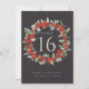 A soft warm black, double-sided christmas/holiday table number card featuring hand painted red berries and eucalyptus arranged into a beautiful botanical wreath. All text is fully editable. Other designs, table number products and coordinating items are available in my store.