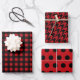 Black Red Buffalo Plaid Polka Dot Houndstooth Wrapping Paper Sheet