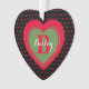 Holiday Folk Art, designed with pretty red hearts sprinkled over a black background, features a large dual color heart design in the center, showcasing your or your loved one's monogram and name. Also wonderful with your pet's monogram, and name. On the back, a matching red heart "tattoo" holds "Christmas 20xx".