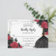Black Red Floral Silver Princess Gown Quinceañera RSVP Card