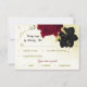 Beautiful wedding response card rsvp with meal choice featuring black and red flowers and gold leaves .