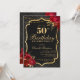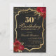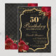 Celebrate in unforgettable style with this dramatic black and gold 50th birthday invitation. Featuring an elegant ornamental frame, rich red florals, and a luxe-inspired layout, this design is perfect for a sophisticated evening celebration.