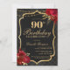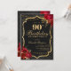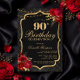 Celebrate in unforgettable style with this dramatic black and gold 90th birthday invitation. Featuring an elegant ornamental frame, rich red florals, and a luxe-inspired layout, this design is perfect for a sophisticated evening celebration.