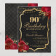 Black, Red & Gold 90th Birthday Invitation