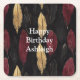 Black Red Gold Feathers Birthday Square Paper Coaster