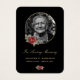 Personalized black, red and gold floral memory cards/funeral prayer cards featuring a gold photo frame adorned with red roses and greenery.