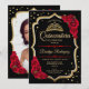 Black Red Gold Quinceanera Photo Invitation