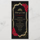 Black gold red Quinceanera Program. Features script font, red roses, tiara and confetti. Classy design with faux glitter gold. Perfect for an elegant glam celebration.
