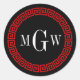 Black, Red Greek Key Round Monogram Envelope Seals, Favour Tags, Stickers