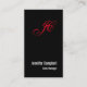 Black Red Handwriting Monogram Name Minimalist Business Card