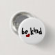 This button features the text ' be kind' in bold black text and a little red heart. Text can be personalised.