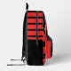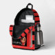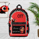 Backpack featuring a cute design with ladybugs, polka dots and stripes. In bright red and black colours. The ladybug images are optional and can be deleted if you prefer. A lovely backpack for a child.