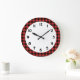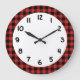 Black Red Lumberjack Buffalo Plaid Large Clock