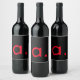 Black Red Monogram Initial Letter Modern Plain Wine Label