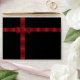 Black inside and out wrapped entirely with a red satin ribbon and bow.
