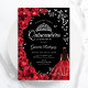 Black red silver Quinceanera celebration invitation. Features brunette girl in ball gown dress, script font, gold butterflies, silver roses and tiara. Perfect for an elegant princess style glam celebration. Personalise with your own details. Printed Zazzle invitations or instant download digital printable template.