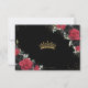 Black Red Roses Floral Gold Quinceañera Sweet 16 RSVP Card