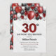 Black Red Silver & White 30th Birthday Invitation