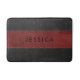 An elegant black and red image of leather is stitched with a customisable monogram.