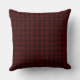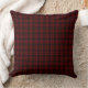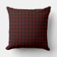 A throw pillow with original black and red simple glen-inspired horizontal plaid pattern with thin stripes.