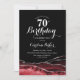 Black, red, white and silver agate 70th birthday party invitation. Elegant modern design featuring watercolor agate marble geode background, faux glitter silver and typography script font. Trendy invite card perfect for a stylish women's bday celebration. Printed Zazzle invitations or instant download digital printable template.