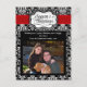 Black and White damask background with a cute shape and ribbon element, along with your custom photo and text. This adorable high contrast background pattern with striking burst of vibrant red is a lovely twist on a traditional holiday card.