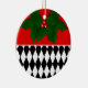 Decorate your Christmas tree with this festive black and white harlequin pattern ceramic ornament. This ornament features green holly leaves and red berries. Turn it over to personalise with your own words.