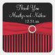 This square black and red striped thank you wedding favour sticker/envelope seal has a red faux ribbon and jewels and matches the wedding invitation shown below. If there are any other matching items you require, please email niteowlstudio@gmail.com with your request.