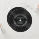 Vintage vinyl record birthday party invitation featuring a retro black & grey starburst stripe pattern set on a cute round circle die cut birthday invitation. Perfect for any adult age birthday, 30th birthday party, 40th birthday party, 50th birthday party, 60th birthday party.