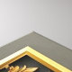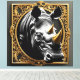 A powerful image featuring a black rhinoceros set against a luxurious gold ornamental frame, conveying a sense of strength and resilience. The contrast between the rugged beauty of the rhino and the intricate, elegant details of the frame creates a visually striking composition.
