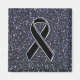 A chrome black style black ribbon awareness decor presented on a midnight blue glitter like background fo a custom gift to suit any event or occasions. Edit this design with some text if you wish and see your creative efforts come to completion.