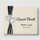 Elegant Black ribbon and faux diamond hearts decorate this guestbook. Wedding guest books are fun for both the couple and their celebrants. Invite attendees to leave you well-wishes at your reception, and you're guaranteed to have a keepsake to look back on for years to come. Plus, your guests will get to leave their mark on your event, not to mention put in writing whatever they didn't have a chance to express in person on the big day. Personalise the book by changing the text in the fields provided. You can change font style, size, and colour.