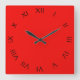 Black Roman Numbers On Red wccn Square Wall Clock