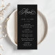 Simple black and white wedding menu featuring elegant and romantic swirly calligraphy lettering with your names. For more advanced customisation of this design, please click the BLUE DESIGN TOOL BUTTON above!