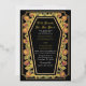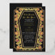 Make a bold statement of eternal love. This gothic wedding invitation features ‘Till Death Do Us Part’ in a coffin-shaped frame, adorned with thorns, roses, real foil accents against a black background. Perfect for a hauntingly romantic celebration! Personalise the text, font, and background colour to suit your design preferences. Matching Items in our shop for a complete party theme.