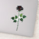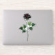 Symbolic, artistically drawn black rose with green stems and leaves on white background. Black rose.