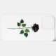 Symbolic, artistically drawn black rose with green stems and leaves on white background. Black rose.