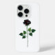 Symbolic, artistically drawn black rose with green stems and leaves on white background. Black rose.