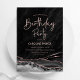 Black and rose gold agate birthday party invitation. Elegant modern design featuring watercolor agate marble geode background, faux glitter rose gold and typography script font. Trendy invite card perfect for a stylish women's bday celebration. Printed Zazzle invitations or instant download digital printable template.