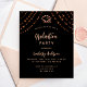 A black background decorated with rose gold stars and a cap. Personalise and add a name and party details. The text Graduation and the name are written with modern hand lettered style script.
