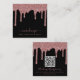 Black Rose Gold Dripping Glitter QR Code Square Business Card