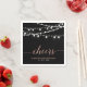 Add stylish detail to your special day with this personalised party napkin. This design features modern chic string lights and typography " Cheers" in rose gold and black colour theme. Matching birthday party invitations and party supplies are available in my shop BaraBomDesign.