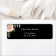 A rose gold and blush pink rose, floral and eucalyptus greenery and faux gold foliage. Personalise and add your name and address. Black background, white text.