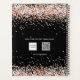 Black background. Rose gold, blush faux glitter dust. Personalise and add a year and name. White letters.