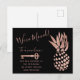 Chic rose gold key and black with hand-drawn rose gold pineapple and elegant typography moving announcement