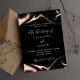 A black background. Decorated with rose gold marble veins. Personalise and add your names and party details. White text.