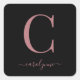 Black Rose Gold Monogram Elegant Script Square Sticker