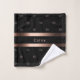 Stylish black with a rose gold frame. Personalise and add your monogram letters, initials and name. Rose gold coloured letters. The monogram as a background pattern. Block letters.