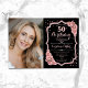 Elegant floral 50th birthday invitation with your photo. Glam black pink design with faux glitter rose gold. Features blush pink roses, script font and confetti. Perfect for a stylish adult bday celebration party. Personalise with your own details. Can be customised for any age! Printed Zazzle invitations or instant download digital printable template.