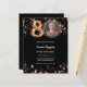 A modern, stylish photo invitation for a 80th birthday party. A classic black background, decorated with rose gold stars. Personalise and add your party details.